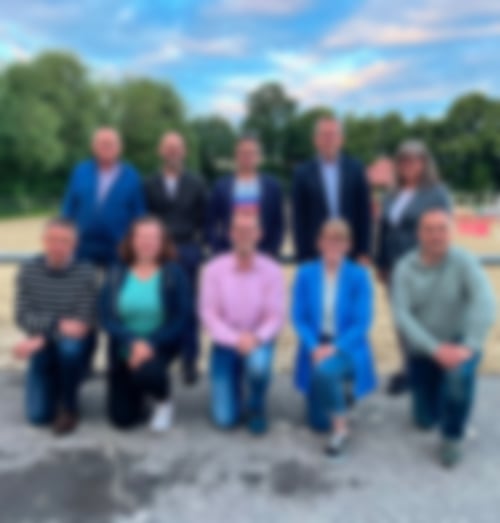 Auf den Fotos von links nach rechts: Bernd Kemper (Stadt Vreden), Hermann Terbrack (2. Vorsitzender SSV), Jutta Kemper (Geschäftsführerin TV), Matthias Resing (1. Vorsitzender TV), Hermann Schemmick (Bauunternehmer), Bürgermeister Dr. Tom Tenostendarp, Hermann Wessels (Architekt), Raphael Kampshoff (Geschäftsführer SSV), Lisa Feller (1. Vorsitzende DLRG), Oliver Oing (Geschäftsführer DLRG), Daniel Rolvering (stellv. Vorsitzender DLRG) und Jutta Dechering (Stadt Vreden).